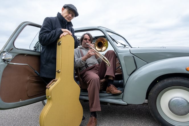 Seit geraumer Zeit treffen sich Posaunist Bernhard Bamert und Gitarrist Dani Solimine zu wöchentlichen Probe-Sessions und legen dabei einen grossen Akzent auf vergessene Songs aus der Swing-Ära.